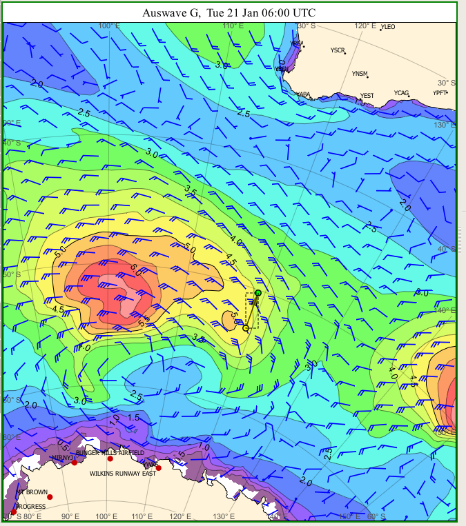 Striking out from Hobart to survey East Antarctica, our journey on Whale Song was always going to be ambitious, but with several different weather programs monitored and expert weather analysis of two weather models provided by the BOM (Bureau of Meteorology), we felt we could be well-informed. After meeting with Scott from the BOM in Hobart, it was agreed that we would provide our predicted noon positions for each three day period to the BOM forecasters based at Davis Station. Tina and Bill, have given Curt the confidence to make well-informed decisions as to the timing of our departure from the ice edge and the course and speed required to outrun particular systems. The consistency of the low-pressure systems barrelling on, one after another from the west, sometimes combining to form “complex” lows, has been most interesting.