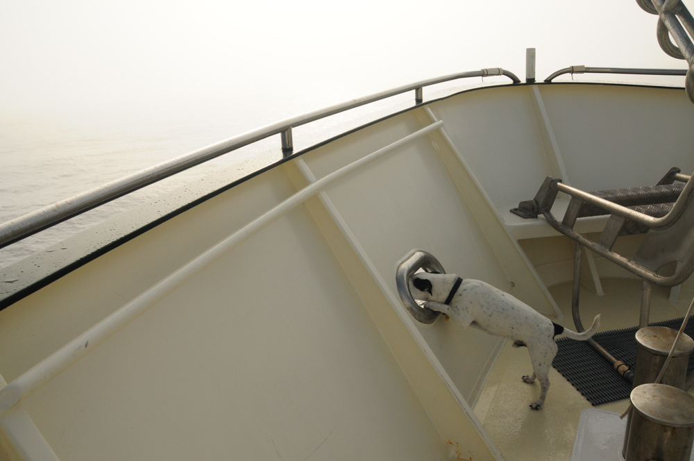Sea Dog Meet Sea Fog. Another first for Mr. Skipper.