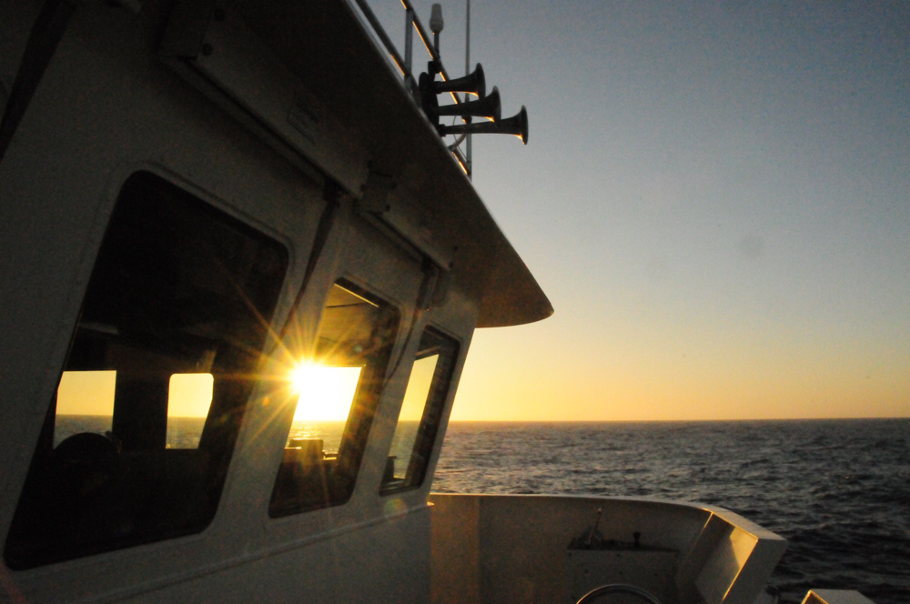 Finishing a busy day observing whales with sunset at sea, is my favourite aspect of life on the ocean. The colours are intense, the clouds enhance or sometimes ruin the daily event but either way, it’s a waiting game. Watching and waiting as the sun, an orange ball appears to drop towards the horizon. And then, in a flash, often a green flash, it’s all over… Luckily, we rotate on this ball called Earth, and daylight returns 10 or so hours later giving us another day to look for whales.