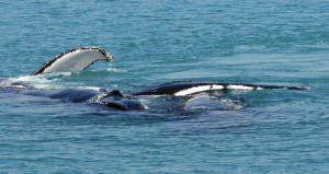 The encounter ends with the male humpback quickly arching towards the female with pectoral fin high out of water. Photo credit M.Jenner